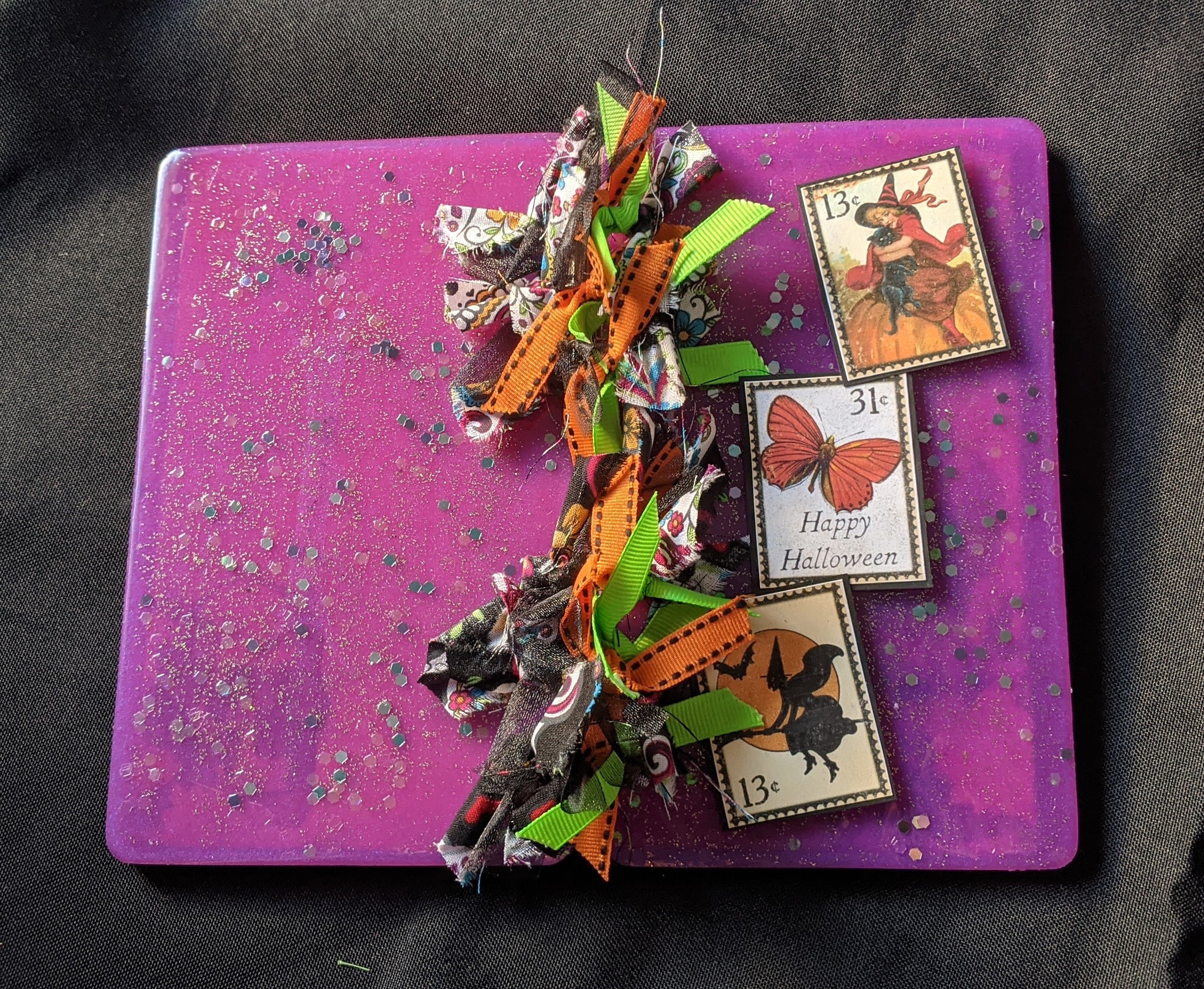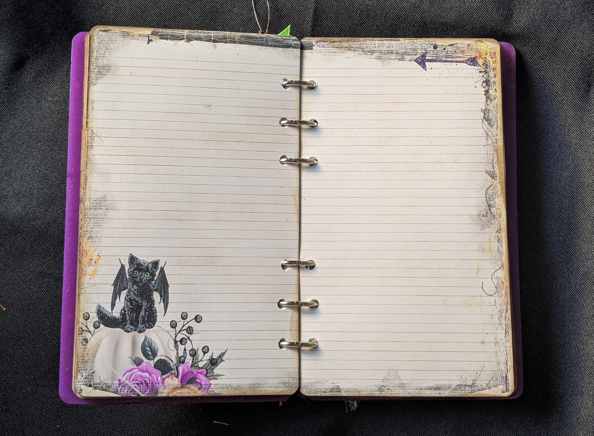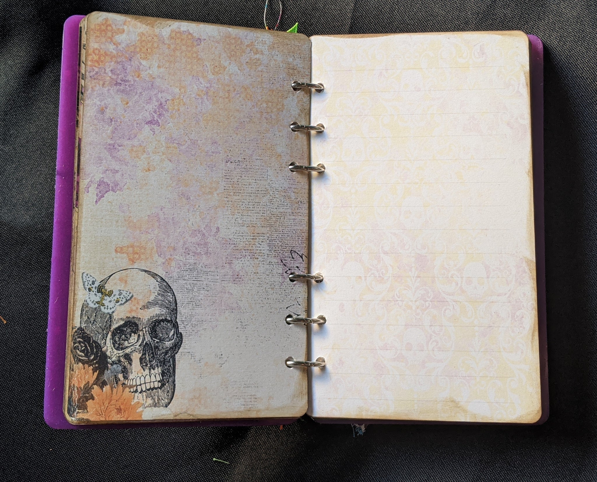 Journal measures 4 1/4 by 7. 64 pages front and back. Ring binding. Resin Cover